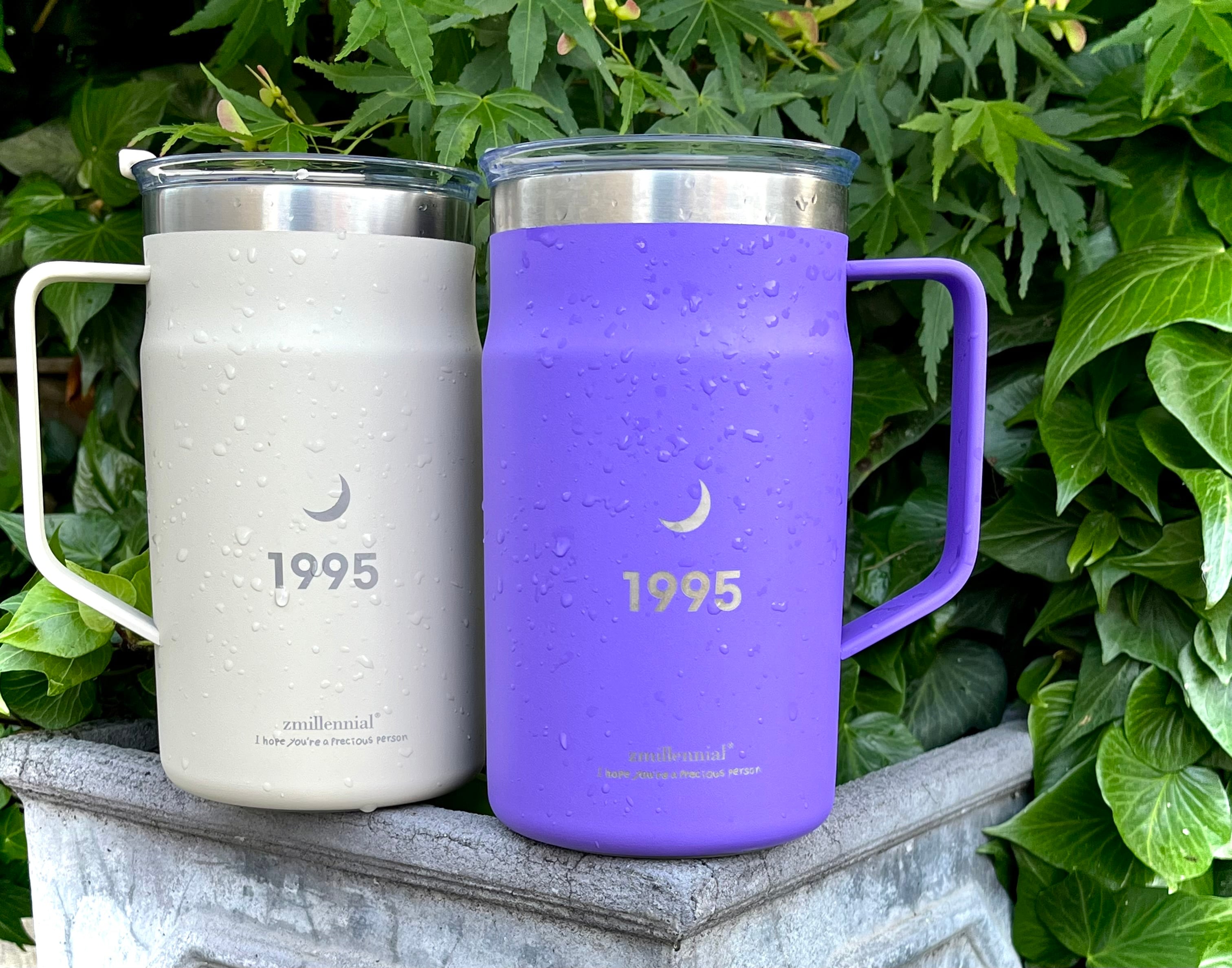 This LocknLock tumbler features a 1995 and moon print.